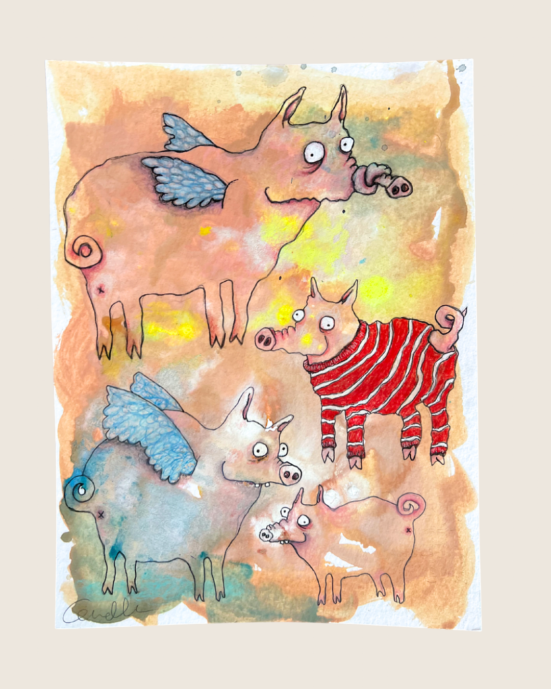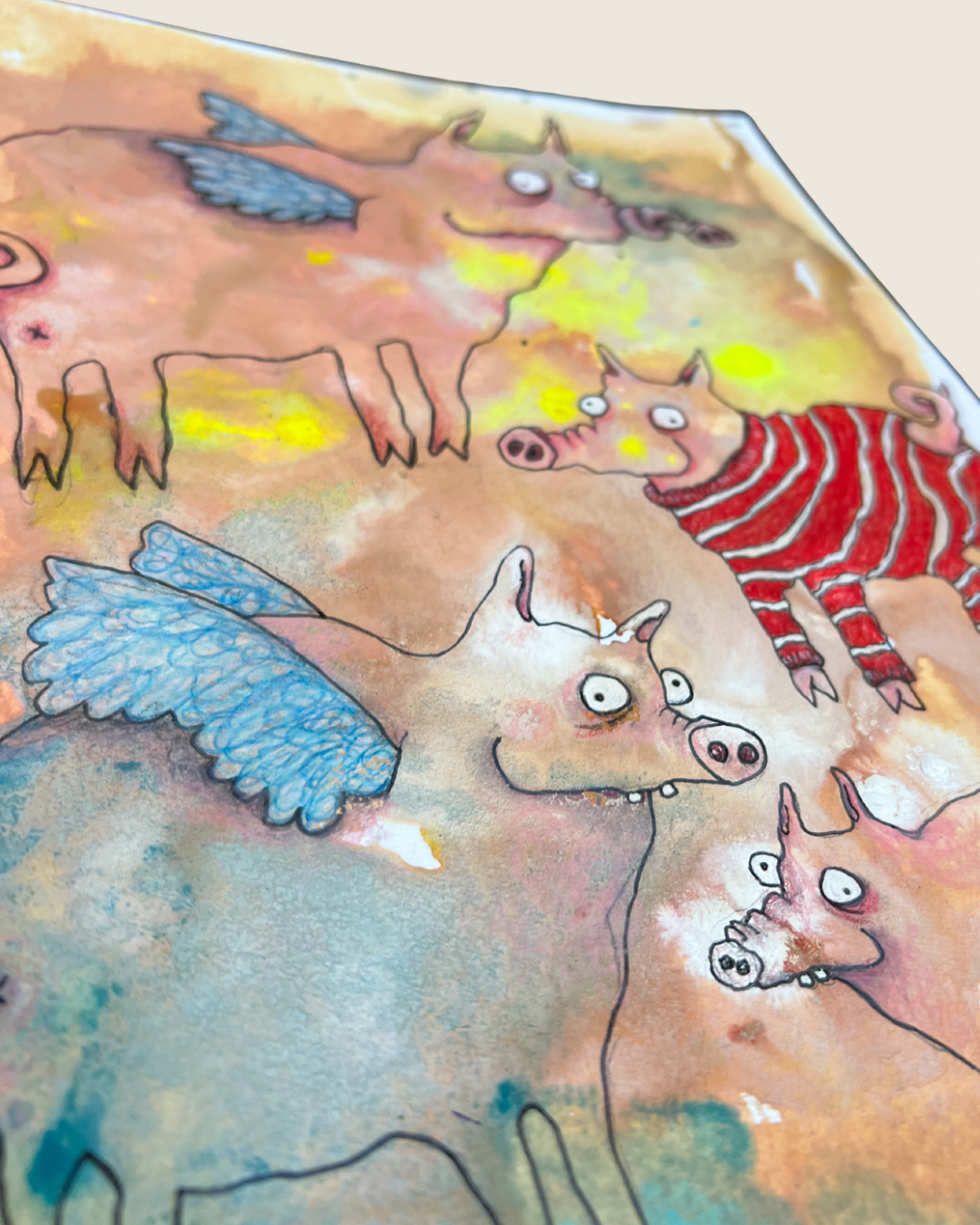 - Det er malet med akvarel, gouache, farveblyant og fineliner på kraftigt akvarelpapir med let struktur