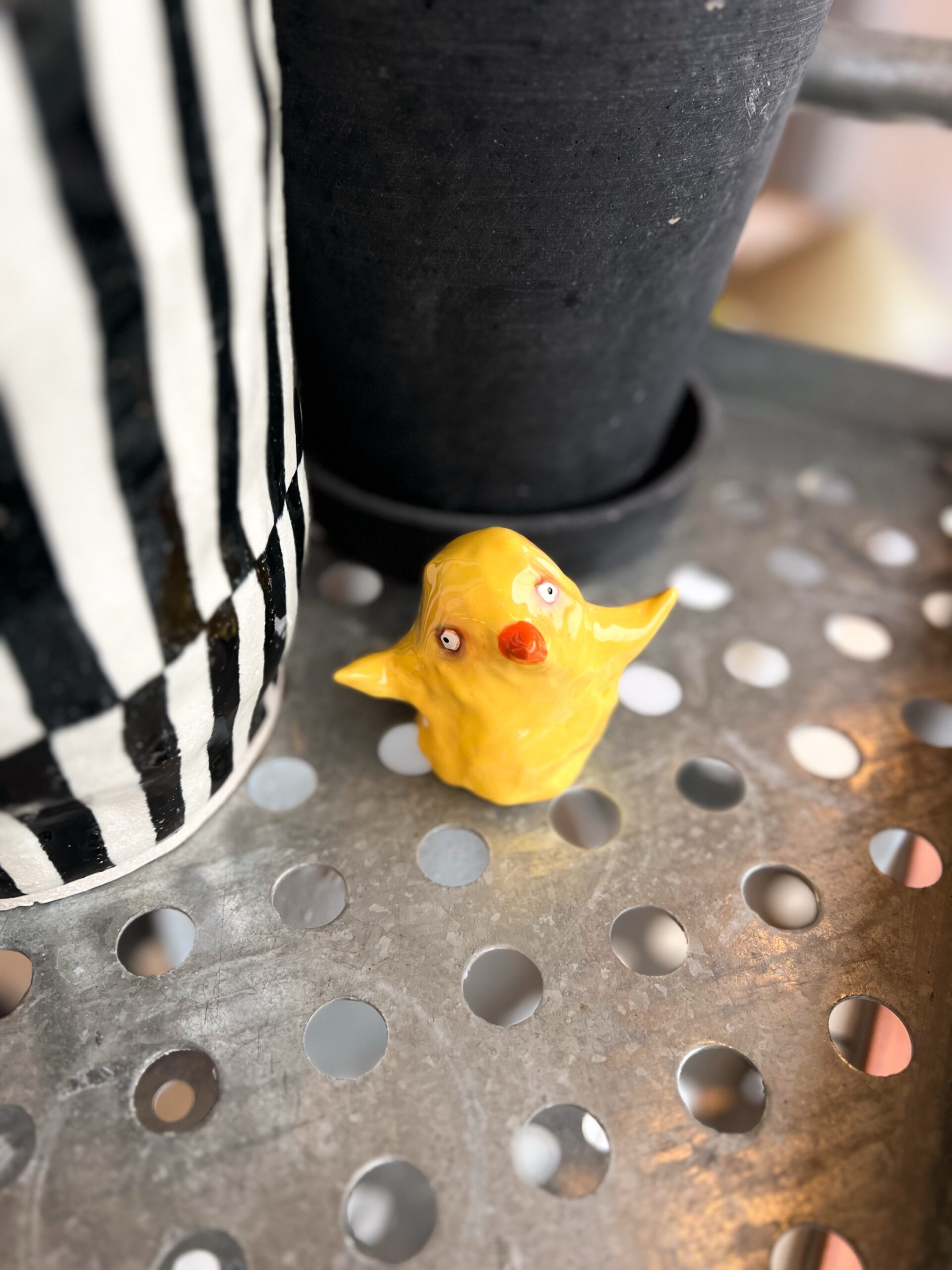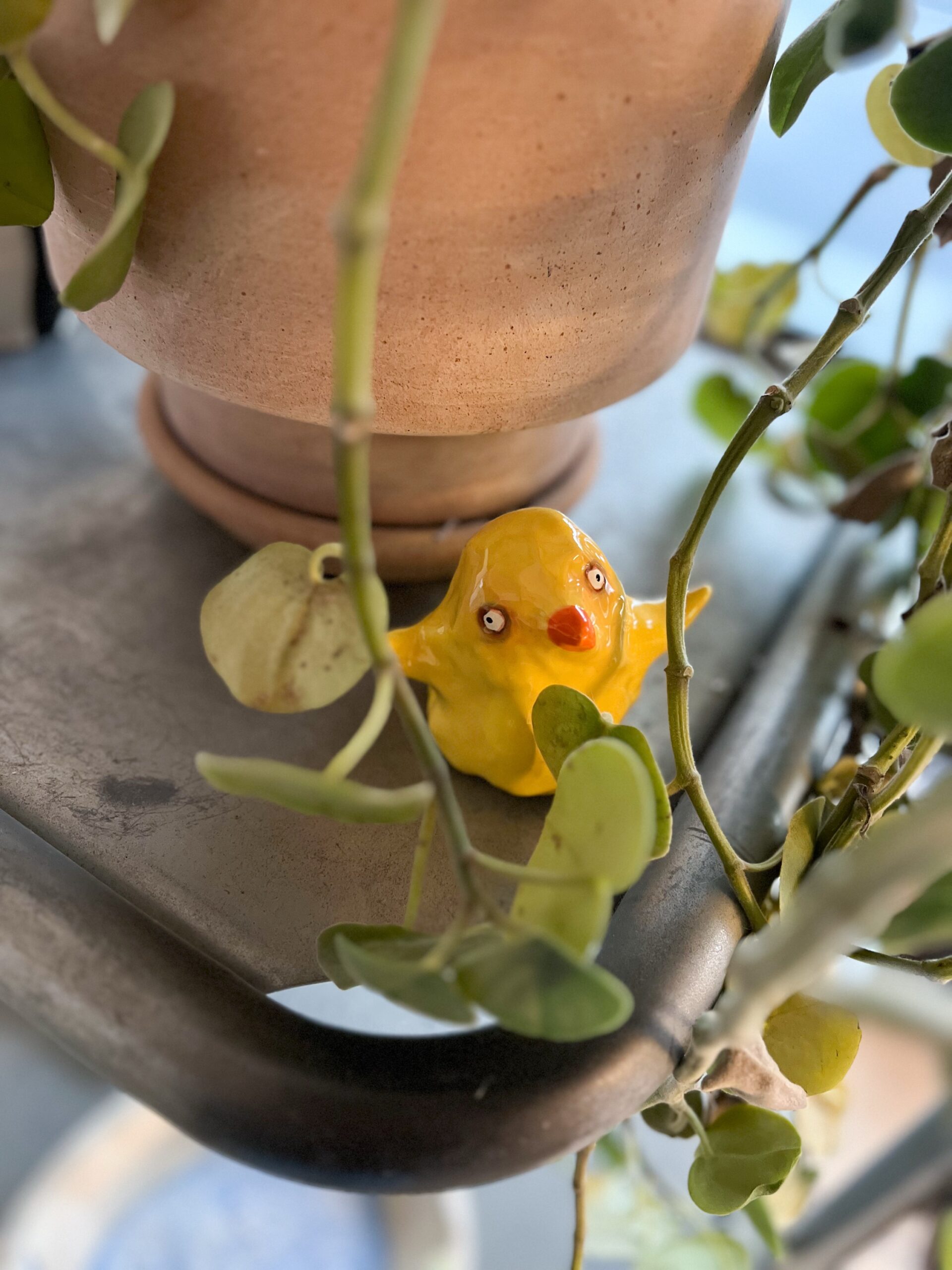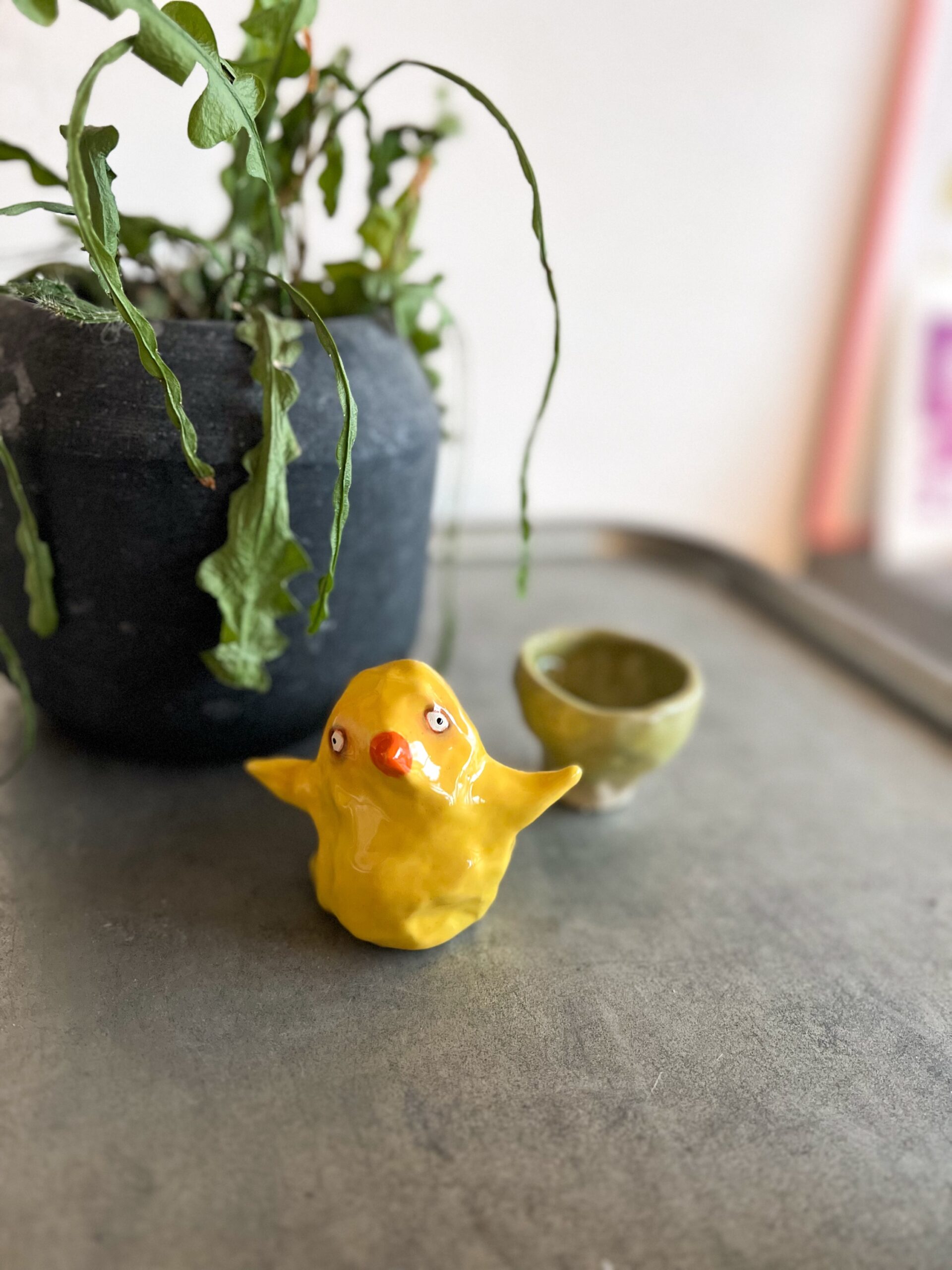 Jeg har skabt et lille keramisk væsen til dig, der kender følelsen af at være sårbar og modig på samme tid. At afvente med hamrende hjerte bag de lette fjer.