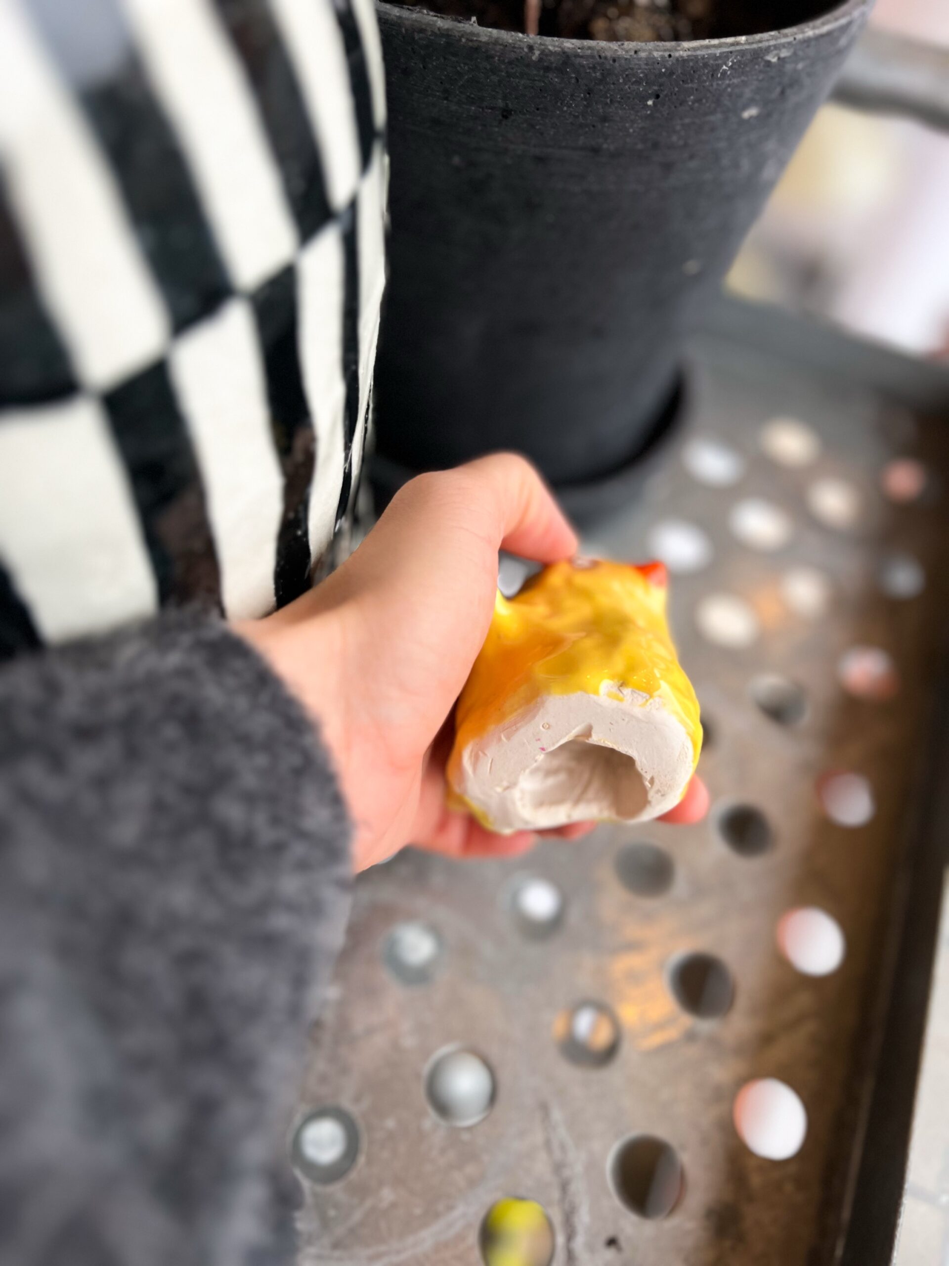 - Lavet i lertøj, formet i hånden og glaseret i blank penselglasur.