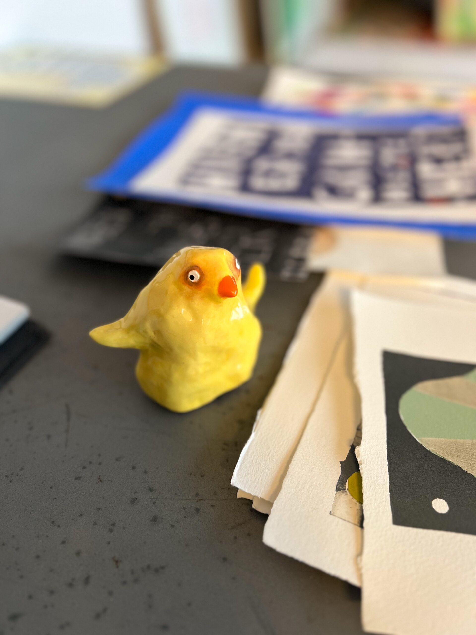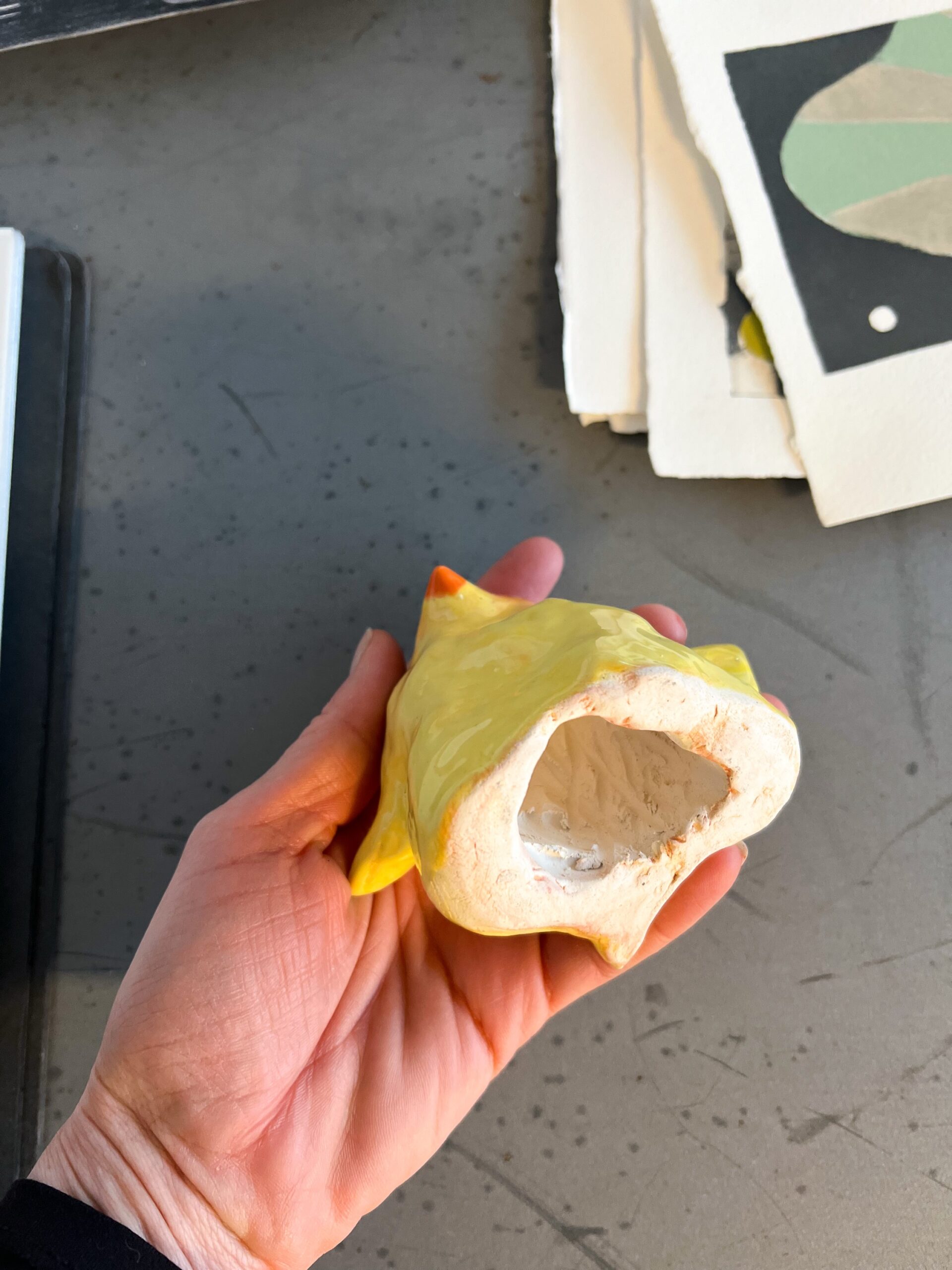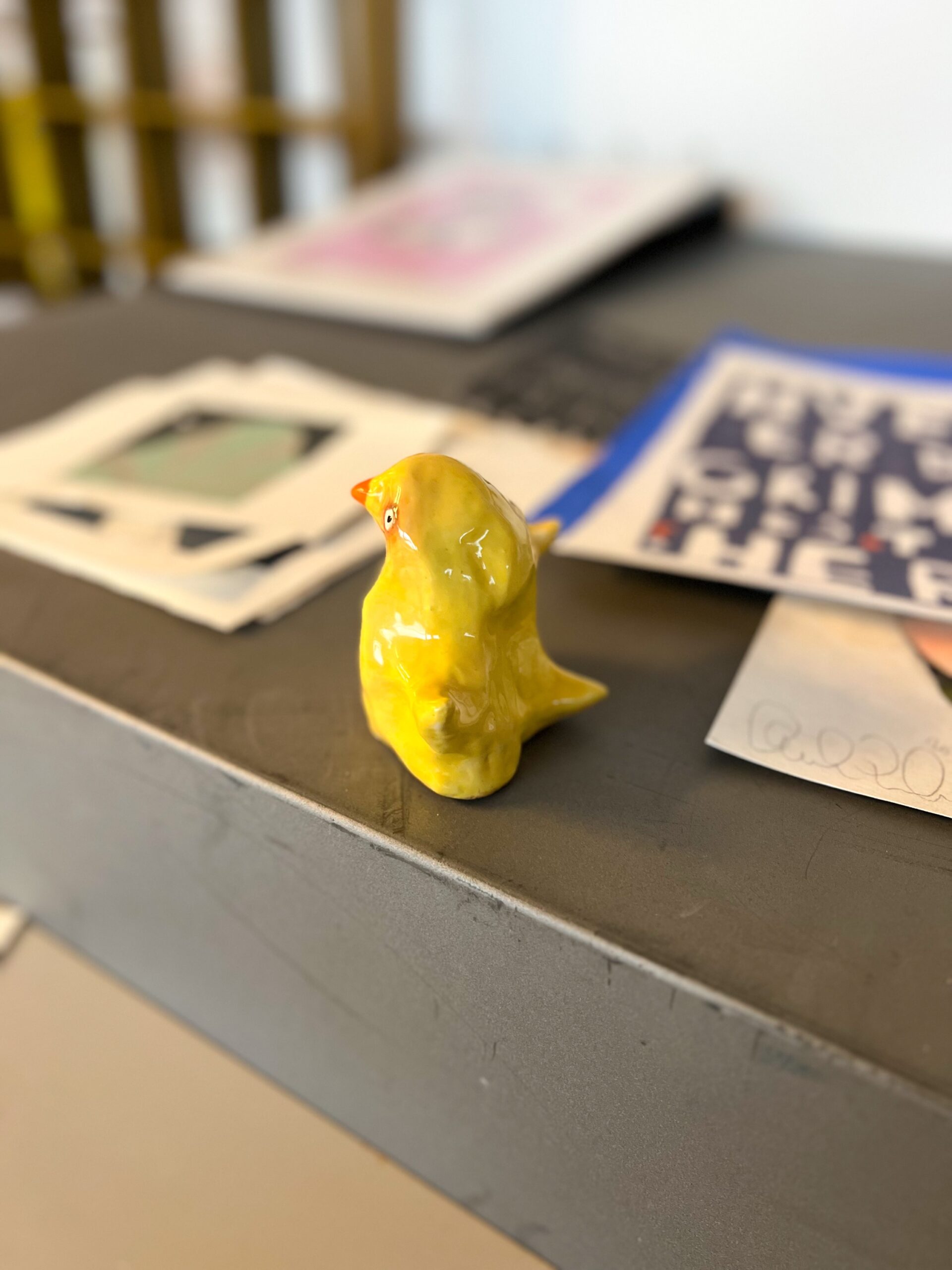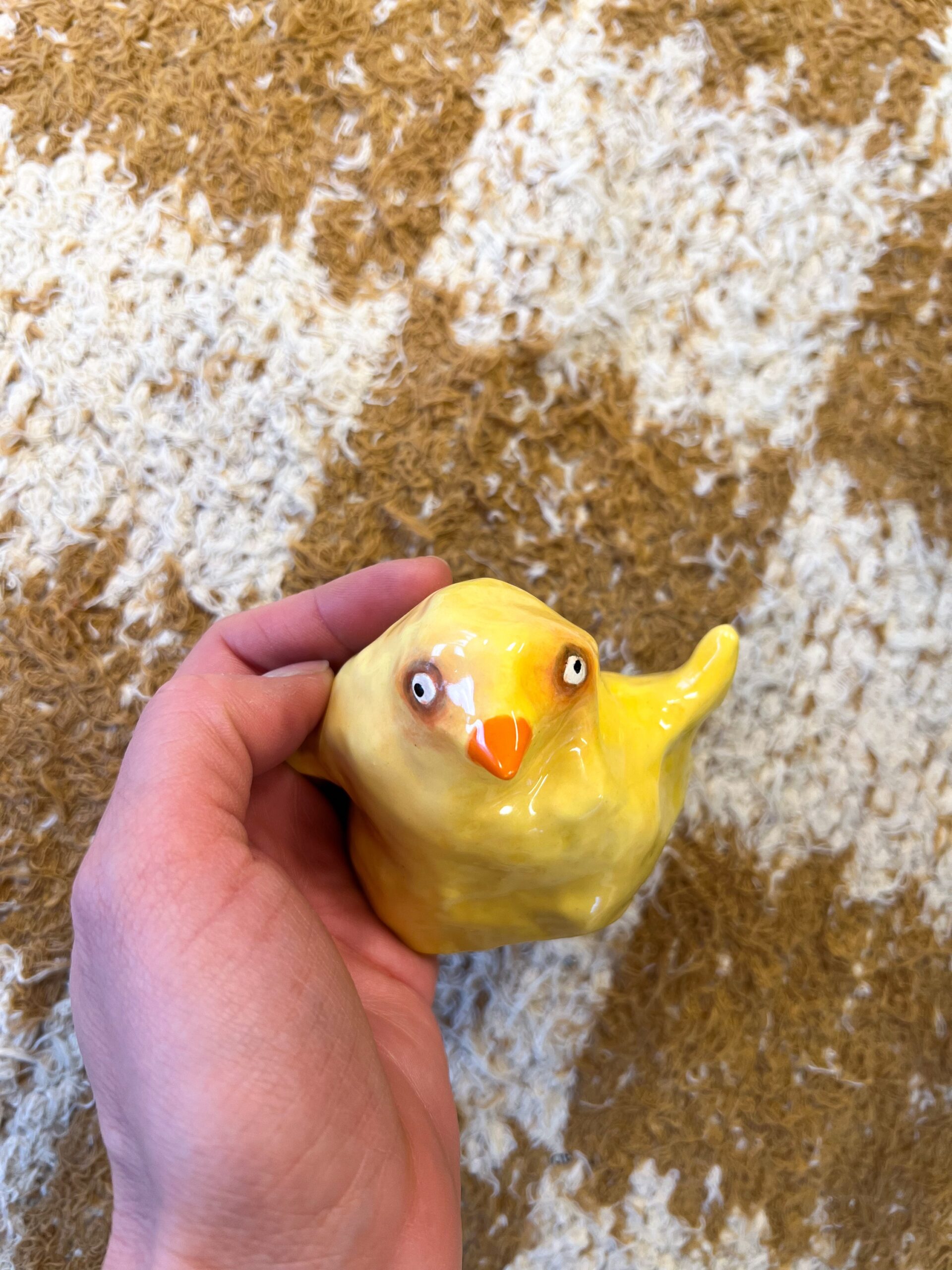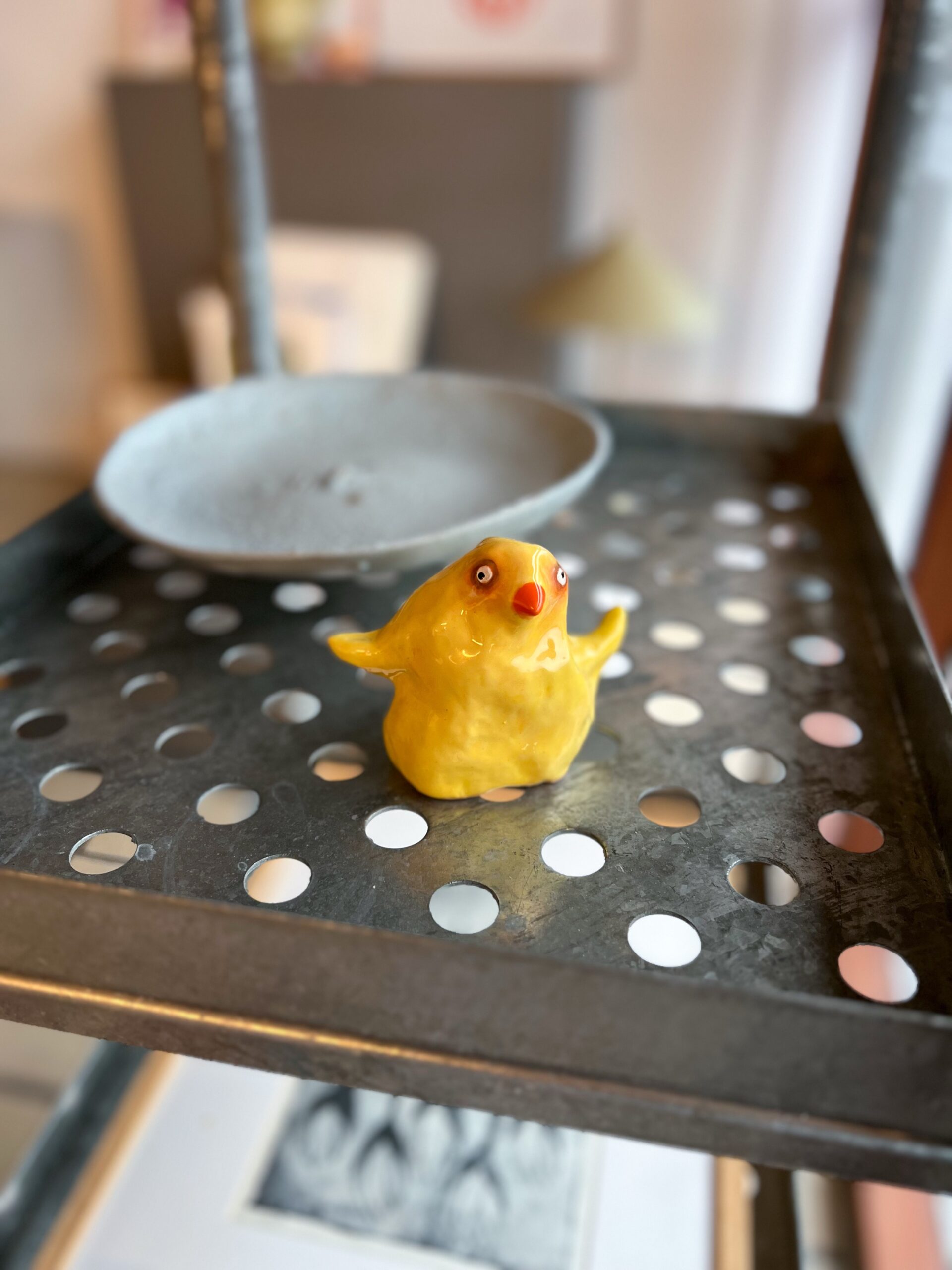 Jeg har skabt et lille keramisk væsen til dig, der kender følelsen af at være sårbar og modig på samme tid. At afvente med hamrende hjerte bag de lette fjer.