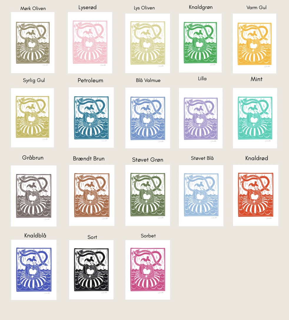 - Kunstplakaten er lavet på 210 grams papir fra Hähnemühle. Papiret har en glat og mat overflade med let struktur, som giver liv til motiv og farver. Der er vandmærke i papiret.