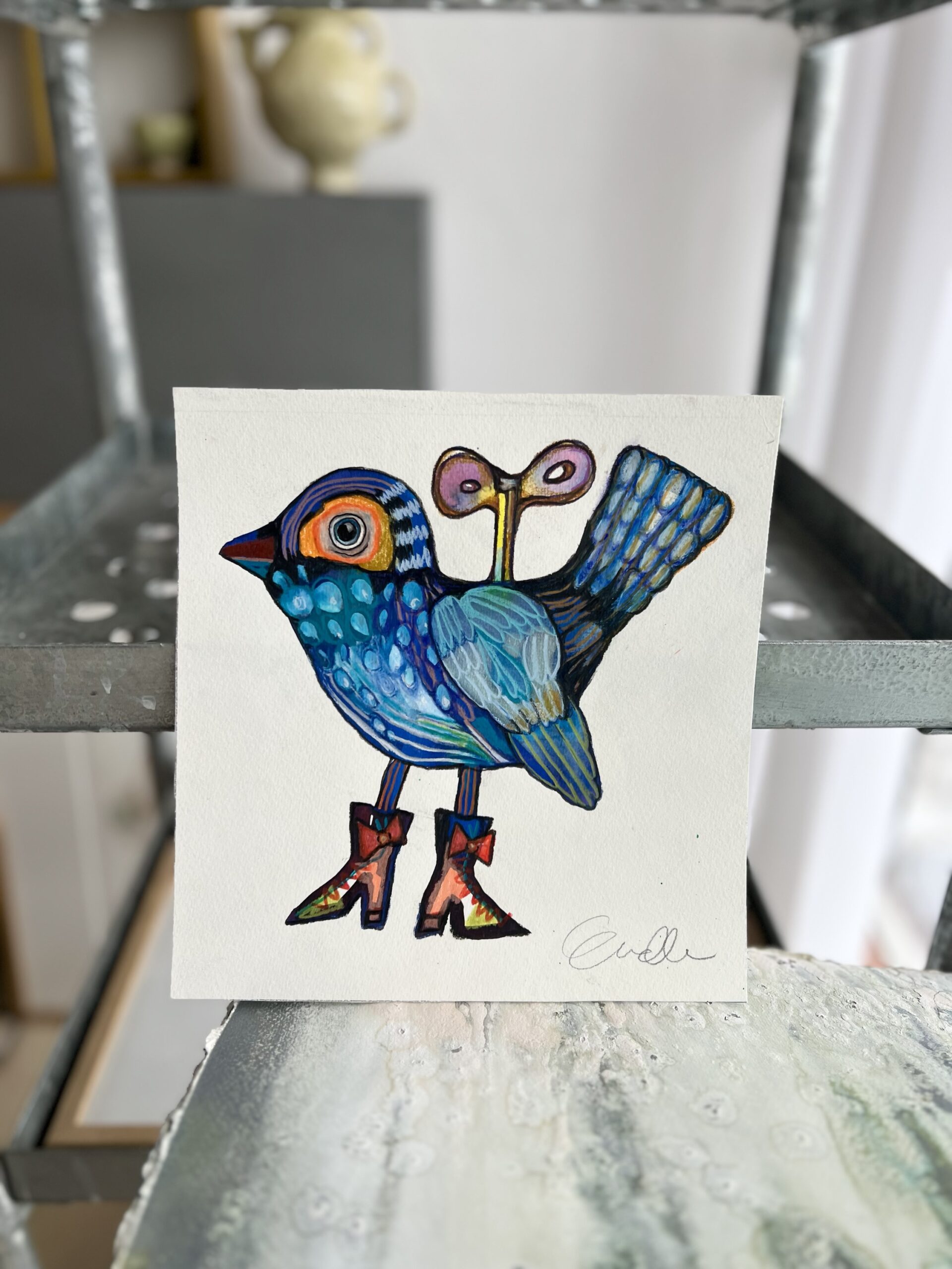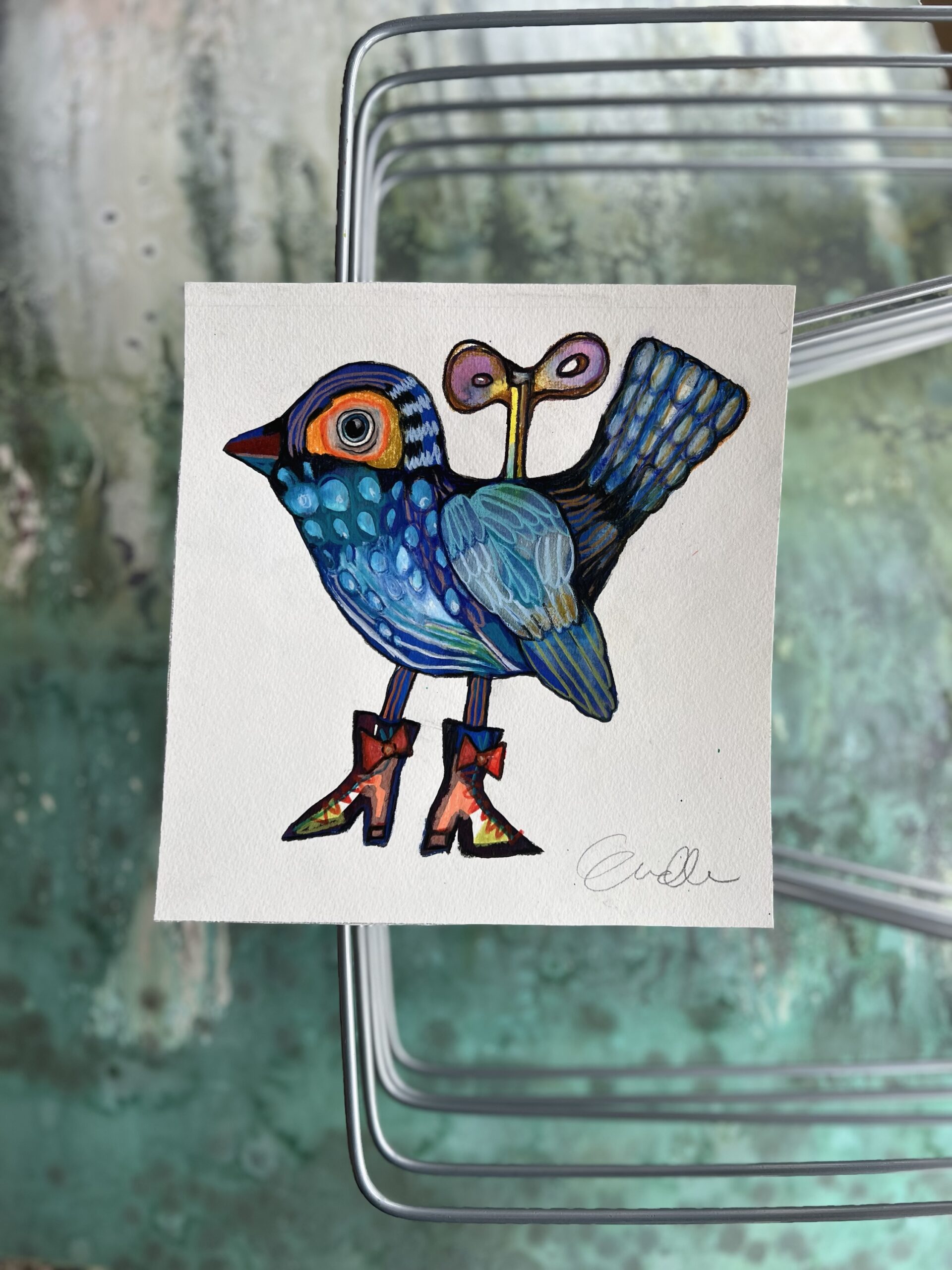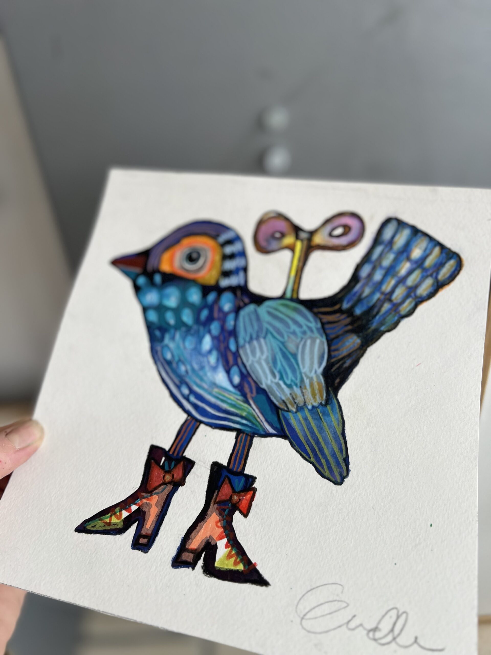 Forunderlig Fugl med optræk – originalt maleri