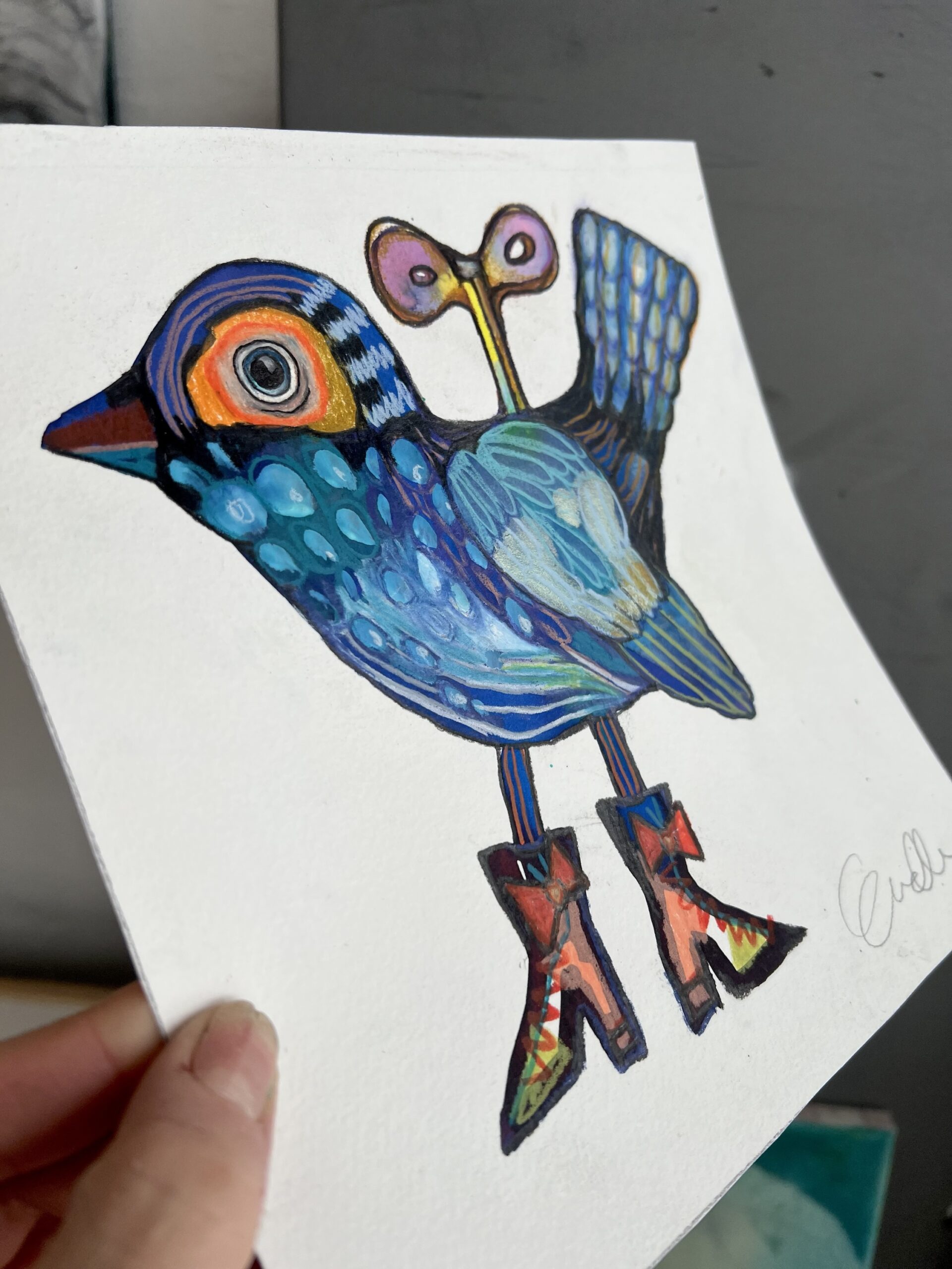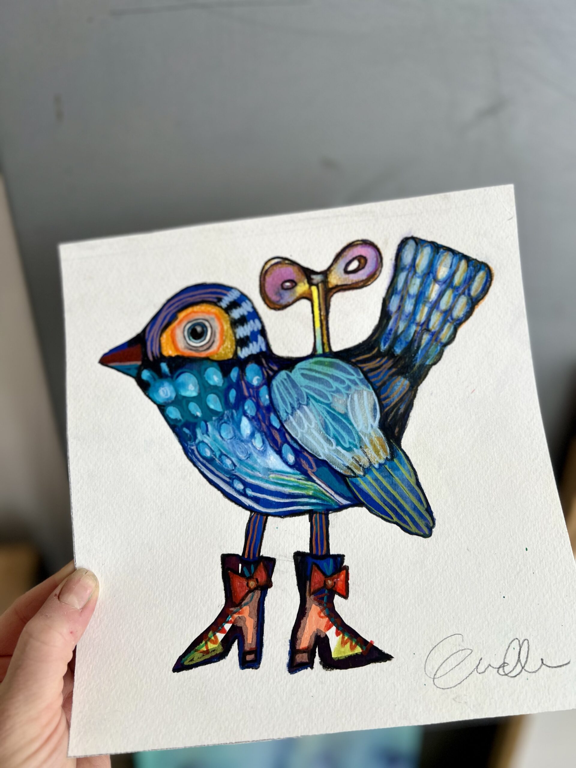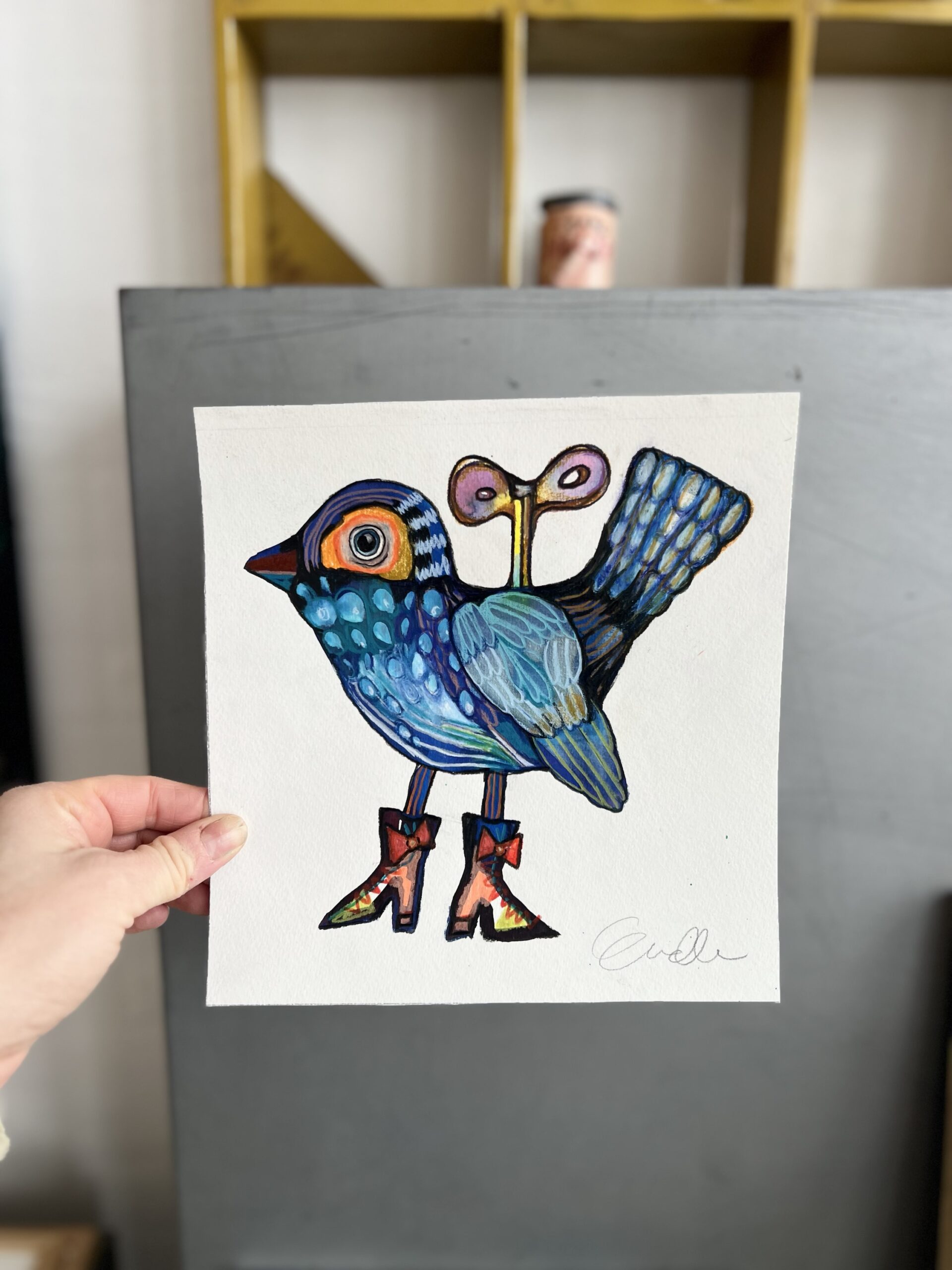Forunderlig Fugl med optræk – originalt maleri