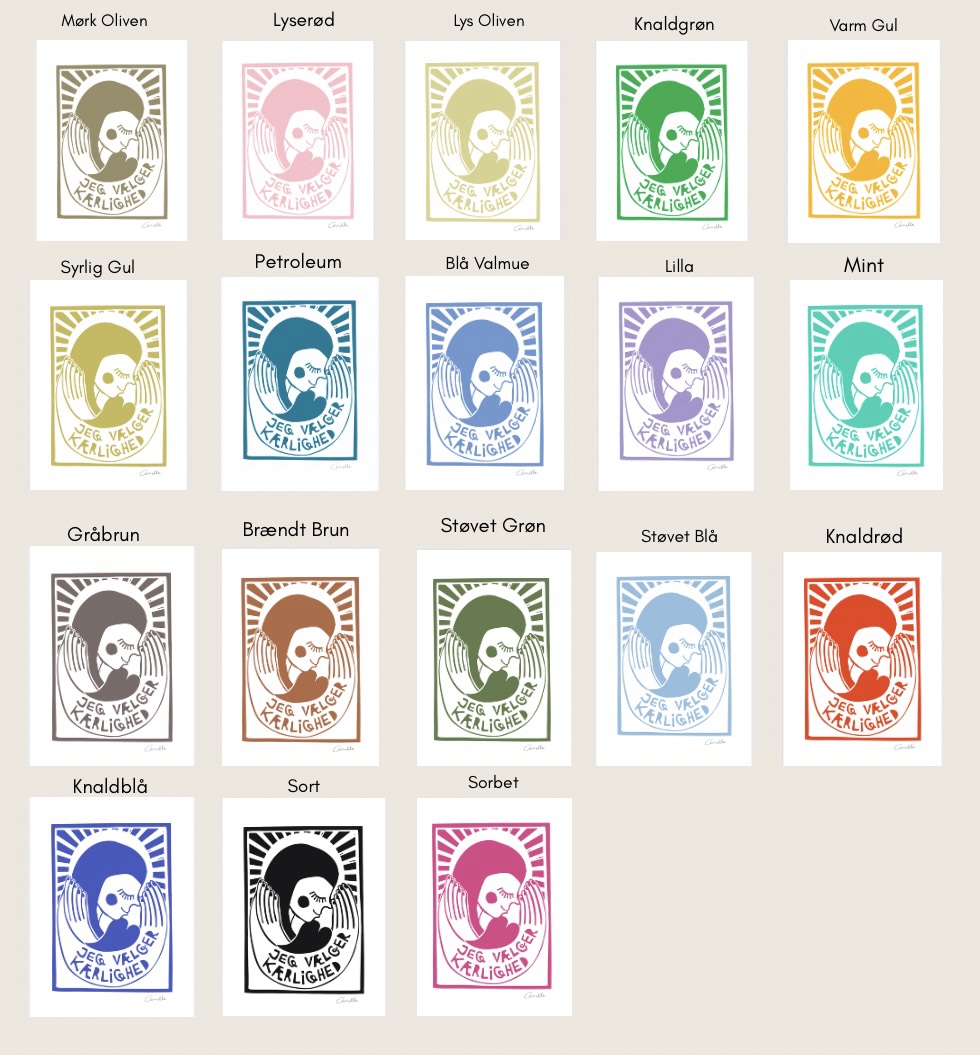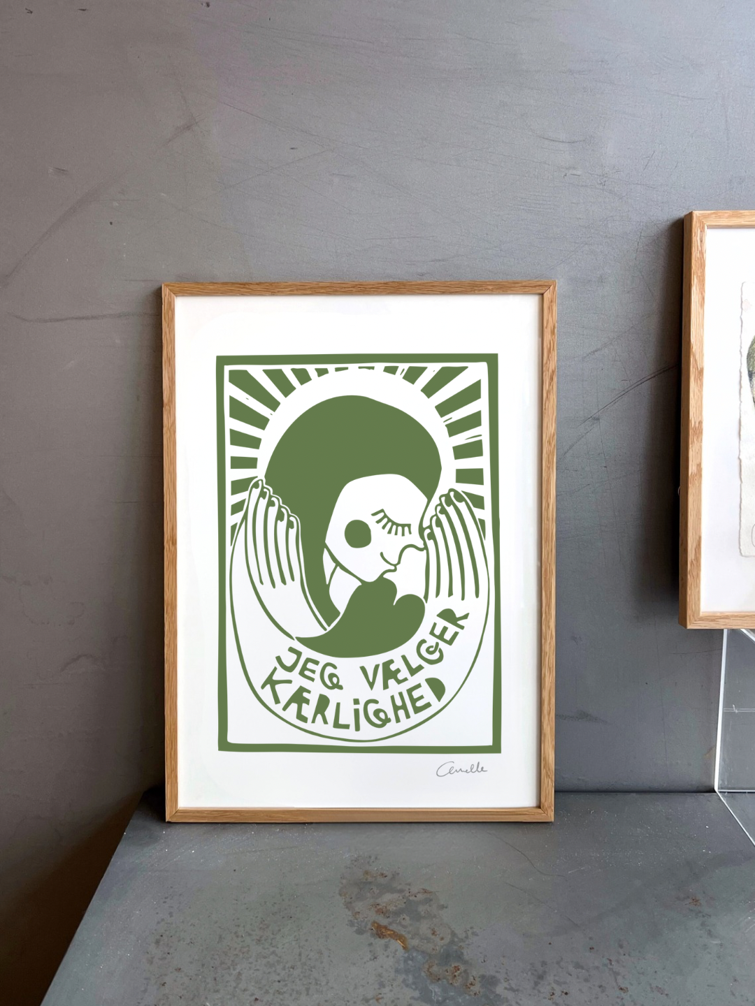 - Kunstplakaten “Jeg vælger kærlighed” kommer i 3 størrelser: A4, A3 og 50*70