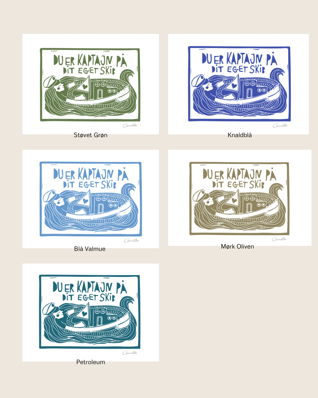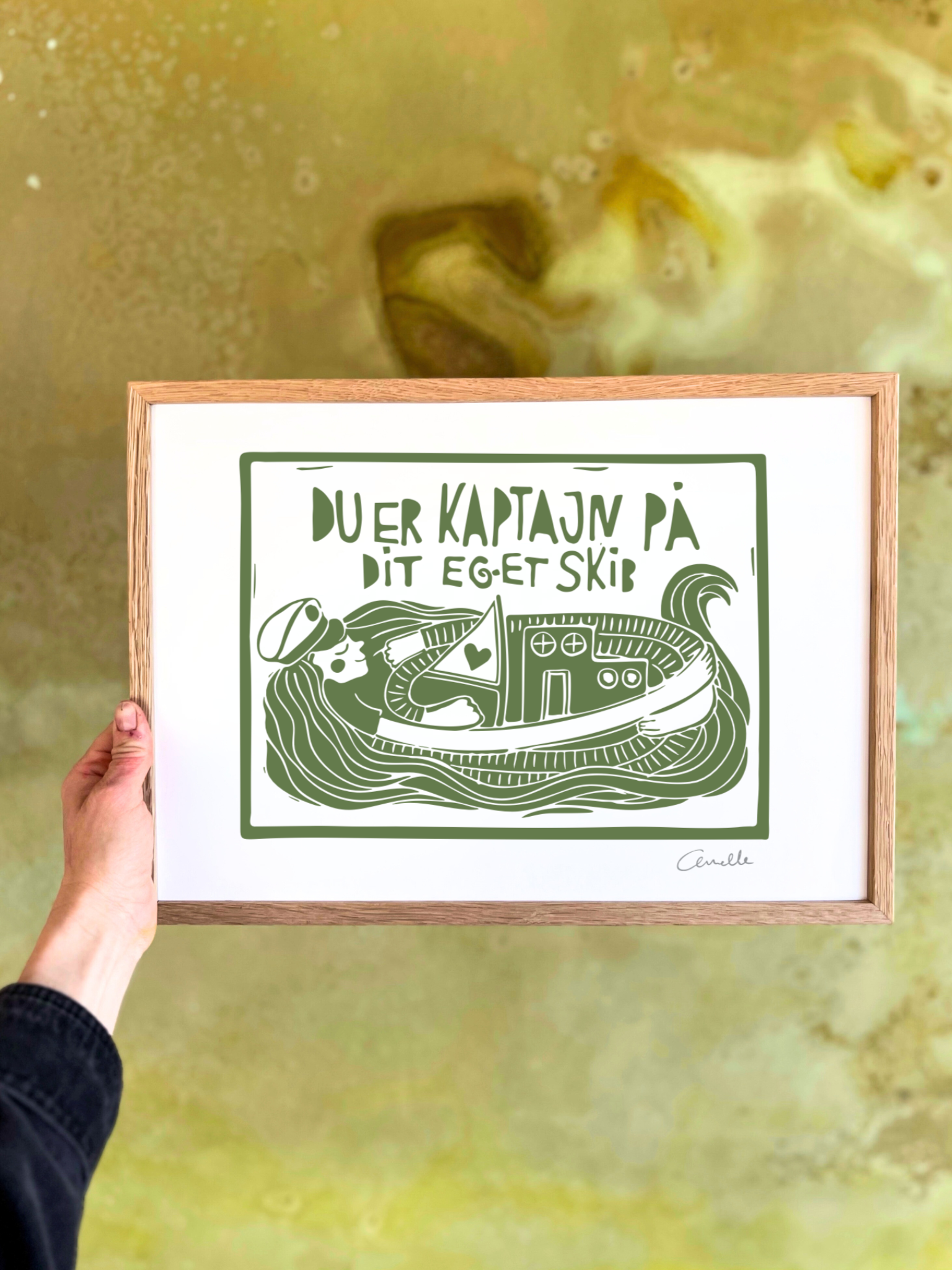 - Kunstplakaten “Kaptajn” kommer i 3 størrelser: A4, A3 og 50*70