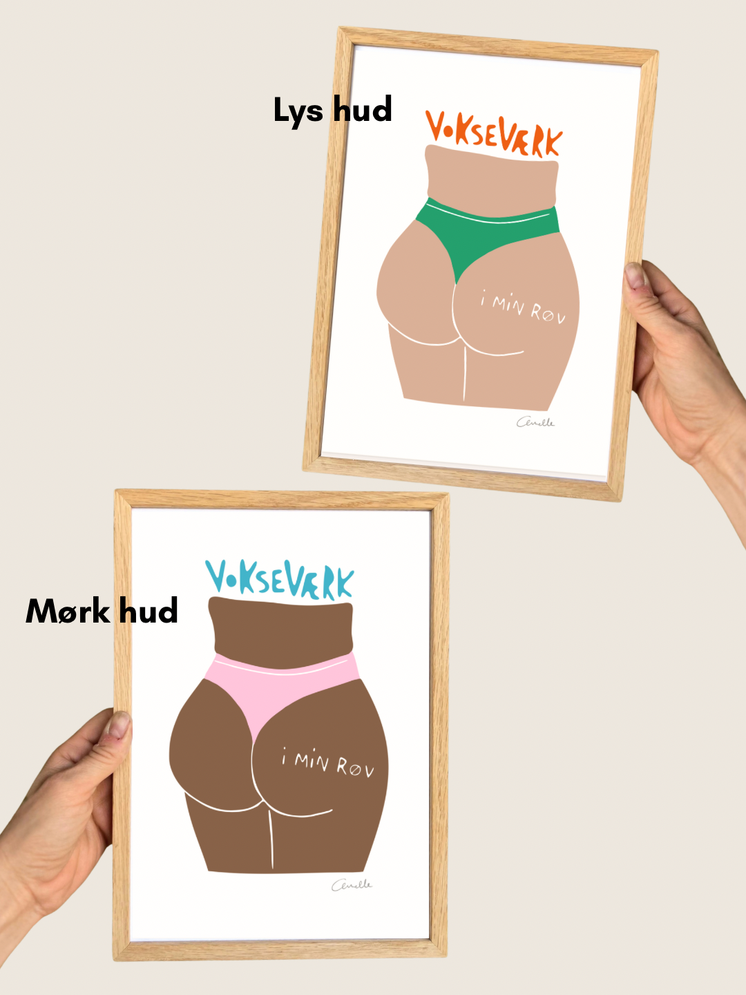 - Kunstplakaten fås som standard i 2 farver: Lys hud og Mørk hud.