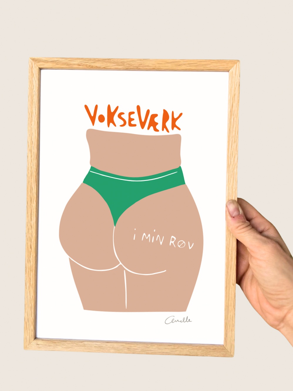 Vokseværk (i min røv) er en plakat med både humor, selvironi og eftertanke. En lille kærlig reminder om, at vækst ikke altid føles elegant. Nogle gange er den bumlet og akavet – og en kæmpe lussing til selvhøjtideligheden.